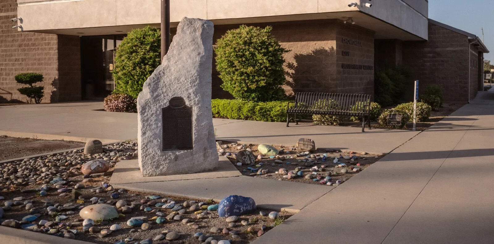 At the base, there were a bunch of little rocks that some kids had probably painted for school. One said “you are rad.” Another said “Chowchilla rocks.” Another said “I believe in you” — believe spelled with a drawing of a bee and a leaf.